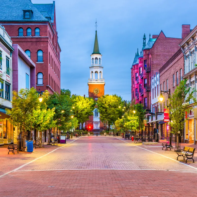 Päivän lopuksi saavut Burlingtoniin, Vermontiin. Burlington on elämää sykkivä kaupunki Champlain-järven rannalla, jossa yhdistyvät eloisa kulttuuri, upea luonto ja paikallinen charmikkuus. Tutustu ikoniseen Church Street Marketplaceen, nauti paikallisista herkuista ja pienpanimoiden antimista, ja ihaile auringonlaskua järven yli.